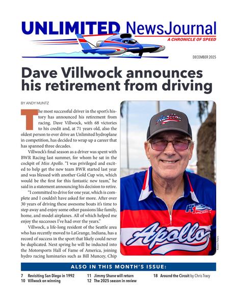 Established in 1966 by Unlimiteds Unanimous, the UNLIMITED NewsJournal is published monthly. The mission is to document and promote the sport of unlimited hydroplane racing. Our monthly publication is provided online free of charge and available at www.unlimitednewsjournal.net